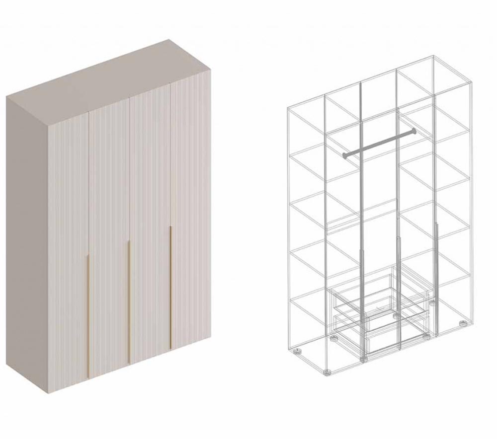 Модульный спальный гарнитур Тефия выполнен в теплом бежевом цвете с изящной фрезеровкой на фасадах из МДФ.