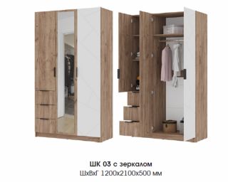 ШК 03 с зеркалом ШхВхГ 1200х2100х500 мммм