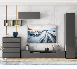 Модульная коллекция мебели Денвер в цвете графит. Разнообразие модулей позволяет оформить интерьер в едином стиле, что актуально не только в квартирах-студиях, но и для больших просторных домов.