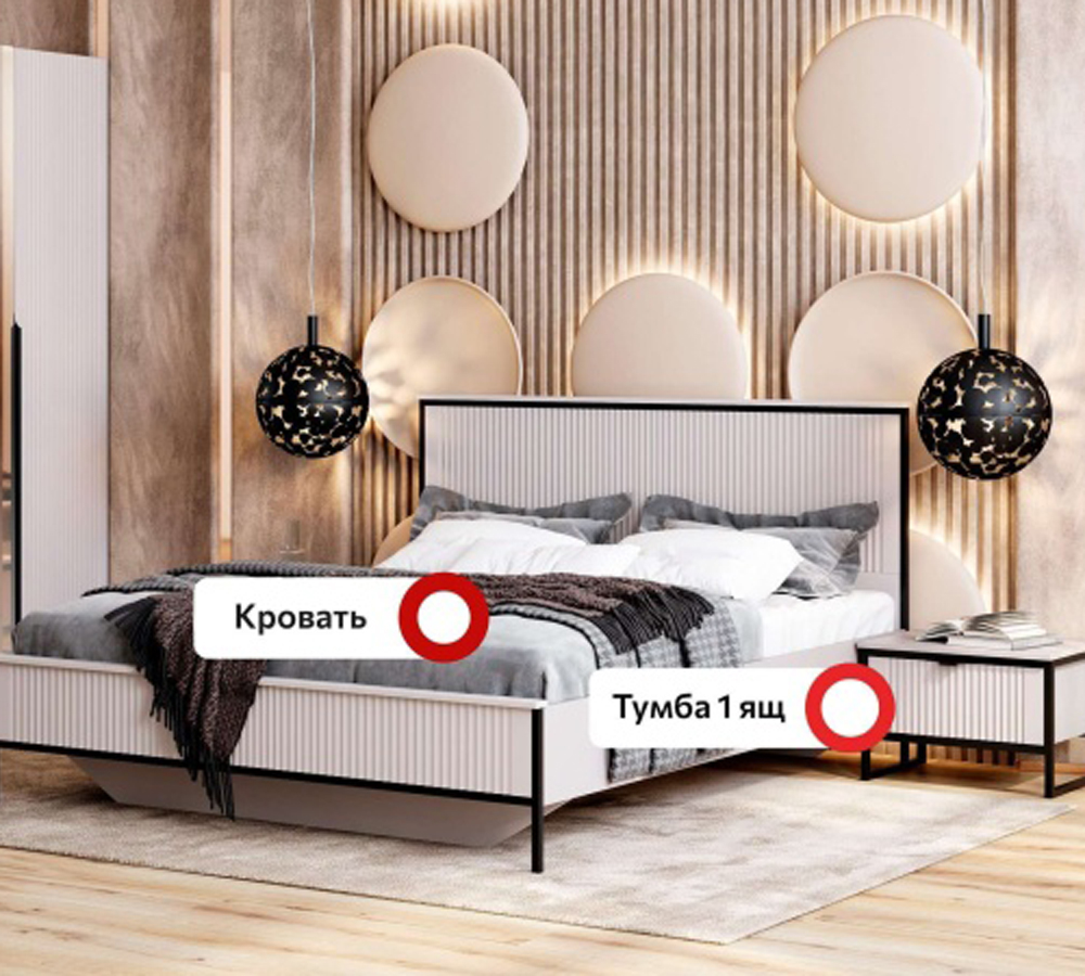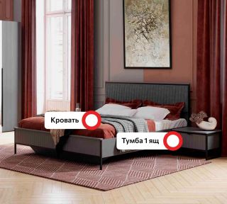 Гарнитур подходит как для просторных, так и для небольших спален, помогая эффективно использовать пространство и создавать уютное место для отдыха и сна.