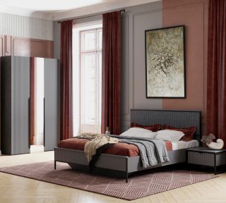 Коллекцию модульной спальни "Нора" отличает современный оригинальный стиль. Декоративная продольная фрезеровка на МДФ фасадах цвета "Графит" и опоры на металлокаркасе цвета "Черная эмаль" соответствуют модным тенденциям этого года в ведущих зарубежных коллекциях. Дизайн коллекции гармонирует со стилем минимализм и лофт.
