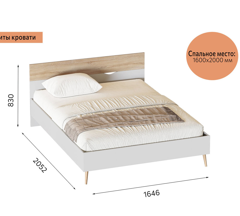Соната спальня кровать 1600 (с ортопедическим основанием на опорах)