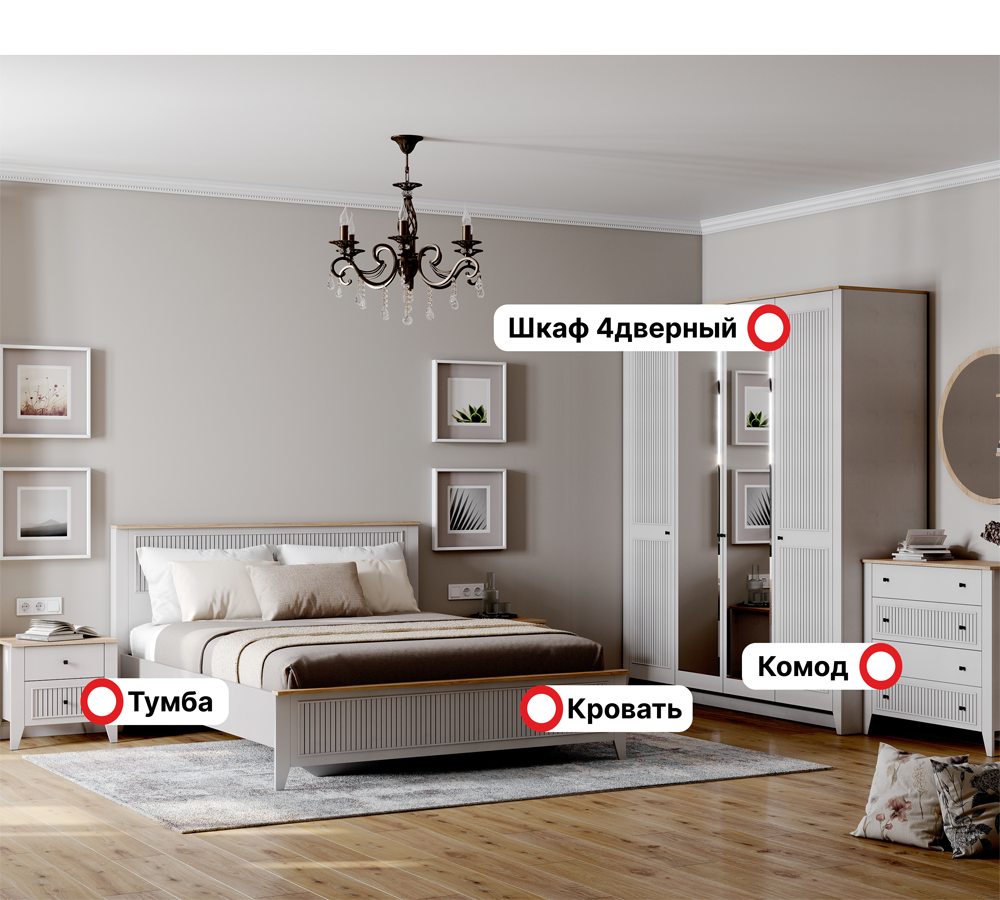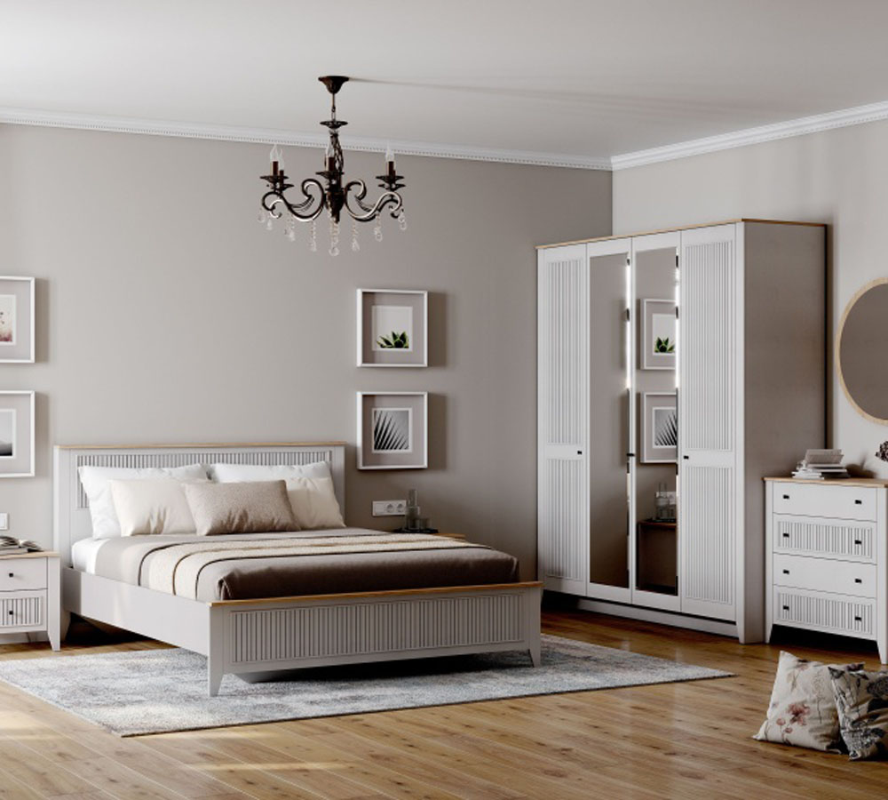 Спальня в цветовом решении "Персидский жемчуг/ Дуб натуральный светлый" придаст интерьеру воздушность, ощущение нежности и легкости, наполнив спальную комнату светом.