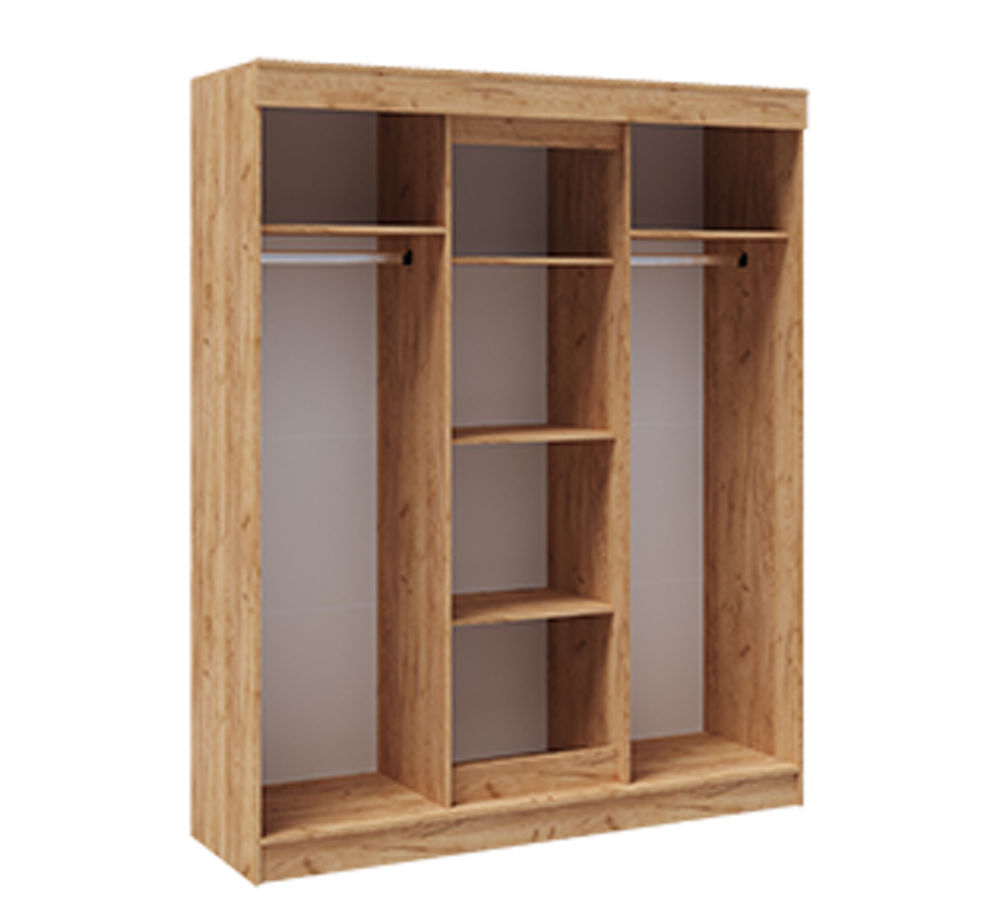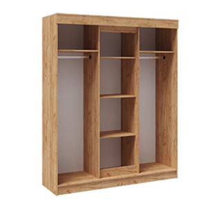 Внутренне наполнение шкафов универсальное: по центру- отделение с полками, слева и справа стационарные металлические штанги