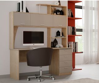 Размеры (ШхГхВ), мм: 1500х650х1930мм. СК-11 компьютерный стол - новинка от фабрики Мебельград. Оборудован надстройкой с полками, тумбой с четырьмя ящиками.