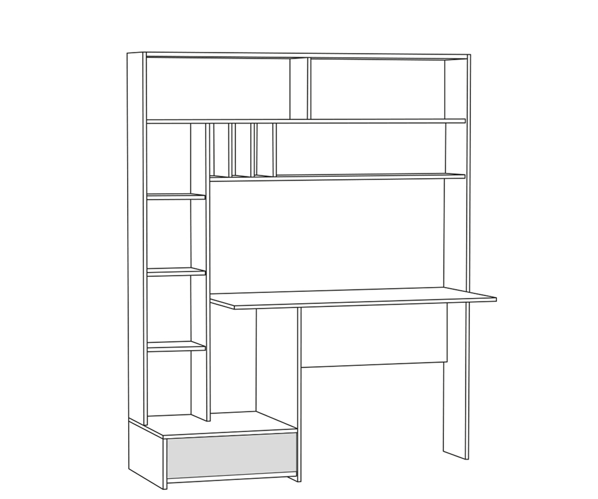 Стол компьютерный с пеналом открытыми полками. Вместительный пенал позволит разместить все канцелярские принадлежности школьника или студента. Размер (ШхГхВ) 1500х570х1800мм.