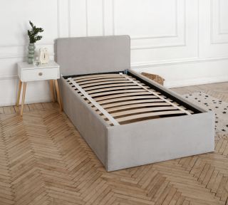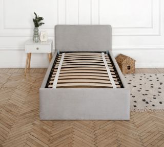 Односпальная кровать TIME 90х190 серый без матраса, с мягким изголовьем для дома, для спальни, ортопедическое основание, ламели усиленные, велюр, IZZIHOME