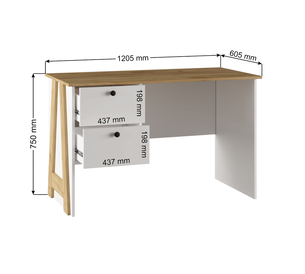 Стол письменный 2Я Габариты ДхВхГ, мм: 1205 х 750 х 605мм