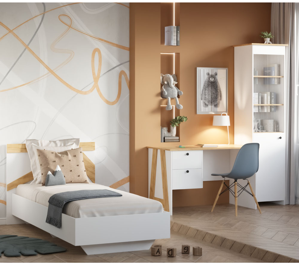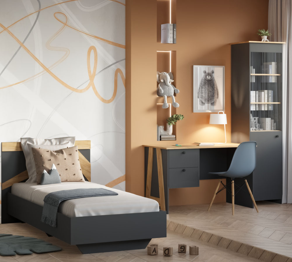 Выполнена в двух вариантах цвета- ЛДСП белый/ЛДСП крафт золотой, ЛДСП графии/ ЛДСП крафт золотой. С помощью этой модульной системы Вы сможете организовать пространство по своему вкусу.