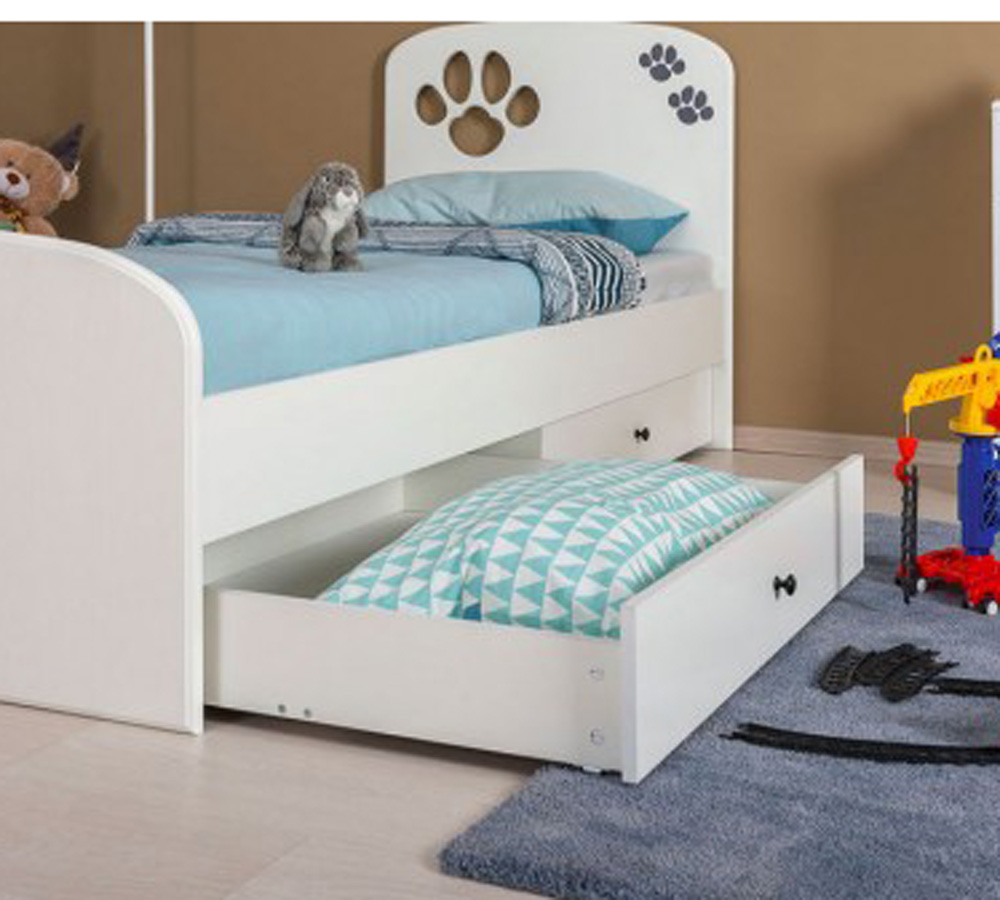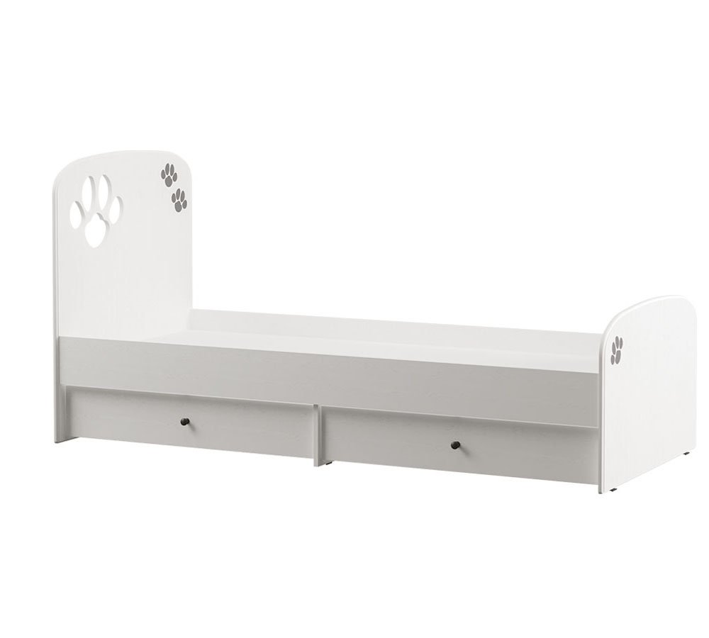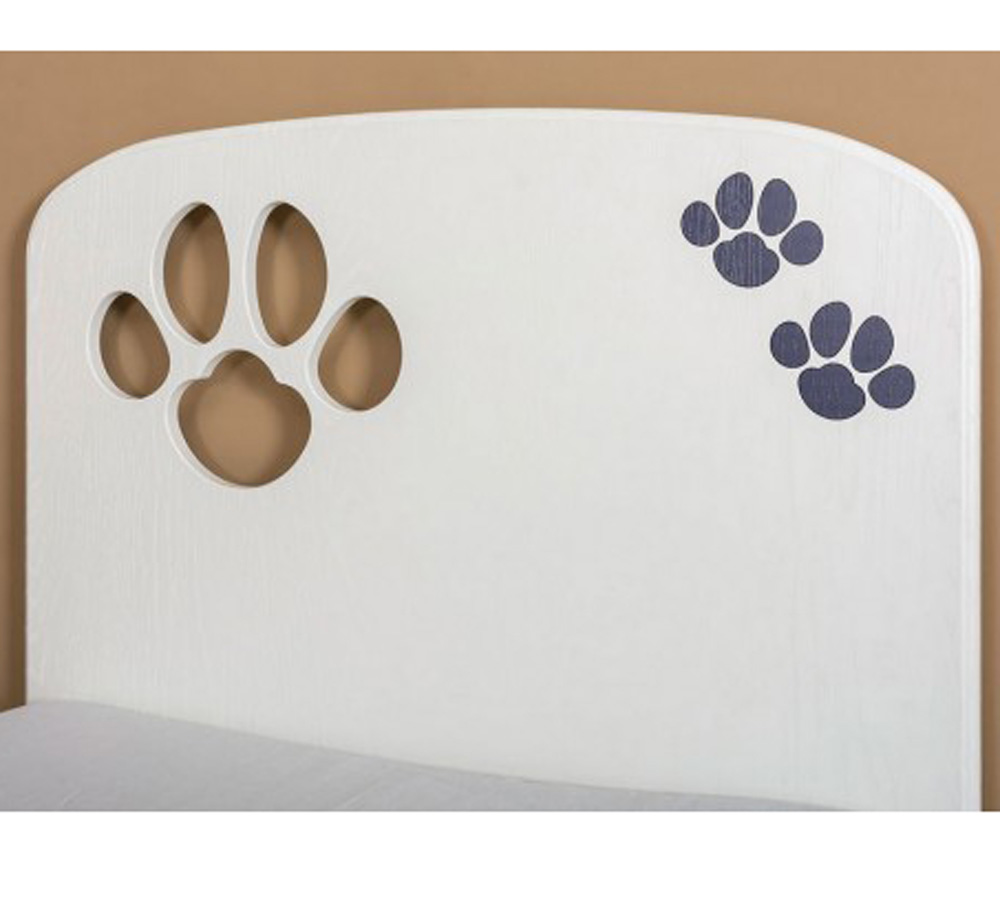 Кровать и комод с минималистичным декором в современном стиле удачно впишутся в любой интерьер и помогут организовать пространство комнаты, при этом не нарушая цветовую гамму уже сложившегося интерьера, а рисунок в виде отпечатков лапок будет напоминать ребенку о любви и бережном отношении к домашним питомцам.