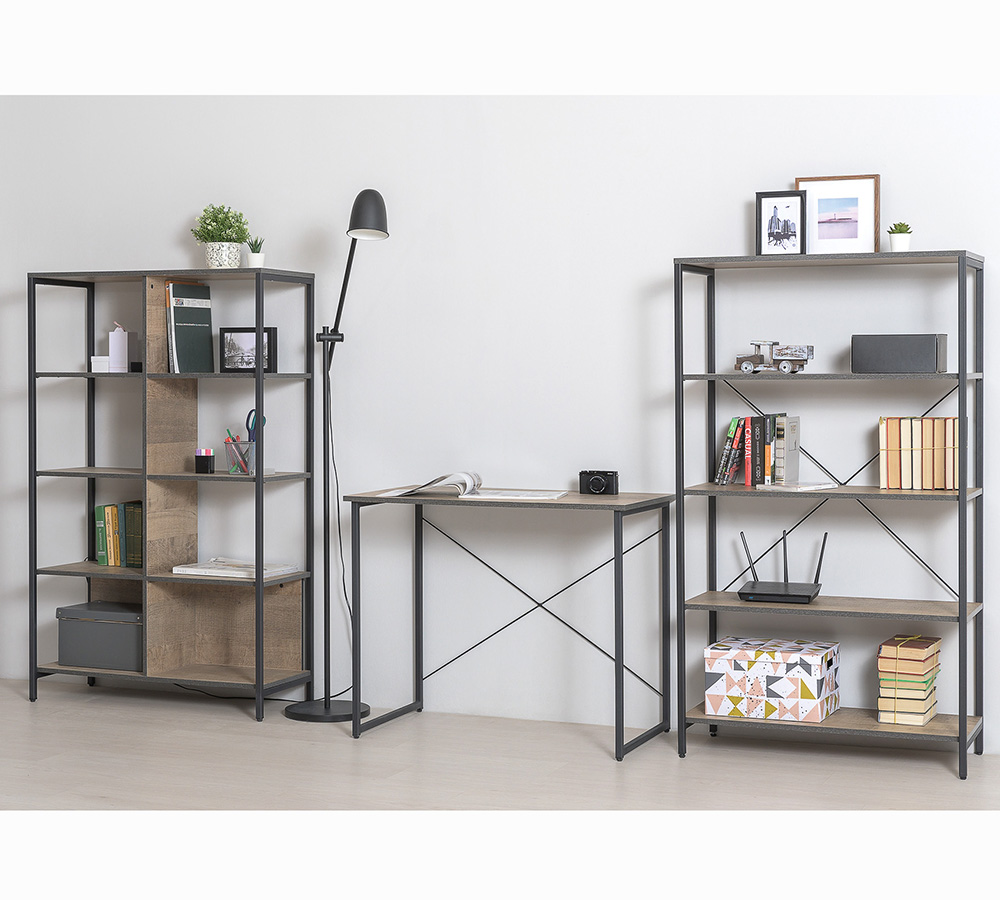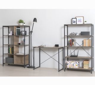 Современный кабинет в стиле лофт. Металлические стойки с регулируемыми опорами делают эту мебель надёжной, аутентичной и функциональной.