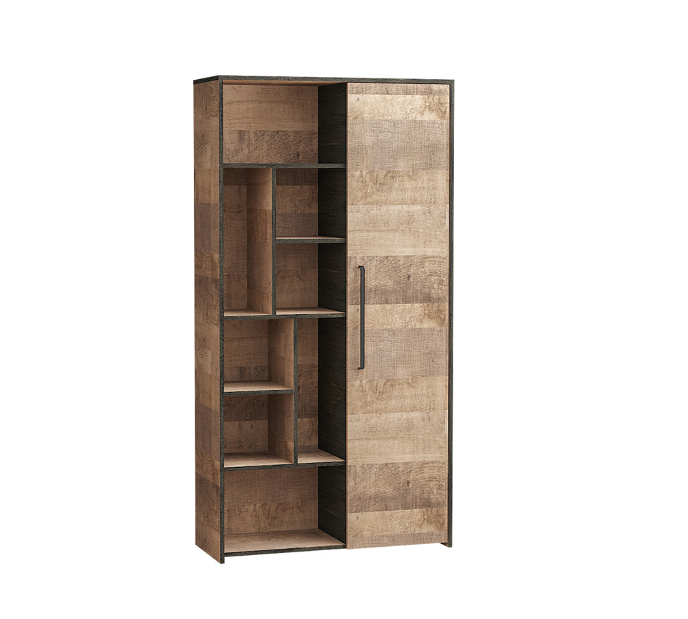 Трувор шкаф-стеллаж 13.206 Дуб Гранж Песочный/Интра - стильная и современная система хранения любых вещей. Конструкция с открытой и закрытой секциями с полками для хранения. Глухая дверь оснащена петлями с доводчиками. Сборка на любую сторону.