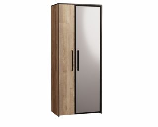 Металлические опоры делают эту мебель надёжной, аутентичной и функциональной. Лицевая фурнитура с тем же покрытием придаёт мебели индустриальную эстетику. Шкаф со створкой из тонированного стекла является современным и оригинальным решением.