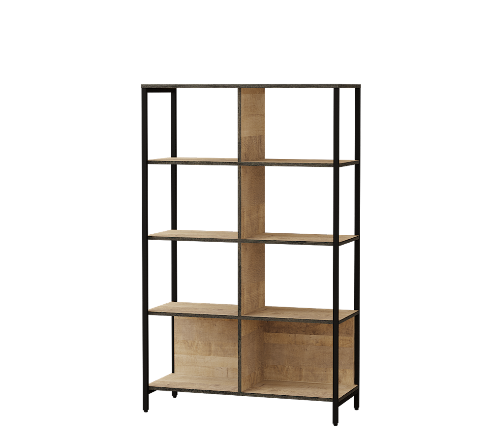 Трувор стеллаж 13.151.02 Дуб Гранж Песочный/Интра - стильное решение для хранения в офисе и дома. Конструкция с 5-ю открытыми полками для хранения с перегородками по центру. Исполнение в комбинированной расцветке.