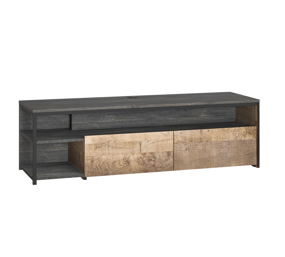 Трувор тумба под ТВ 13.70 Дуб Гранж Песочный/Интра разместит большой современный телевизор в любой комнате. Конструкция с 2-я выдвижными ящиками и открытыми полками.