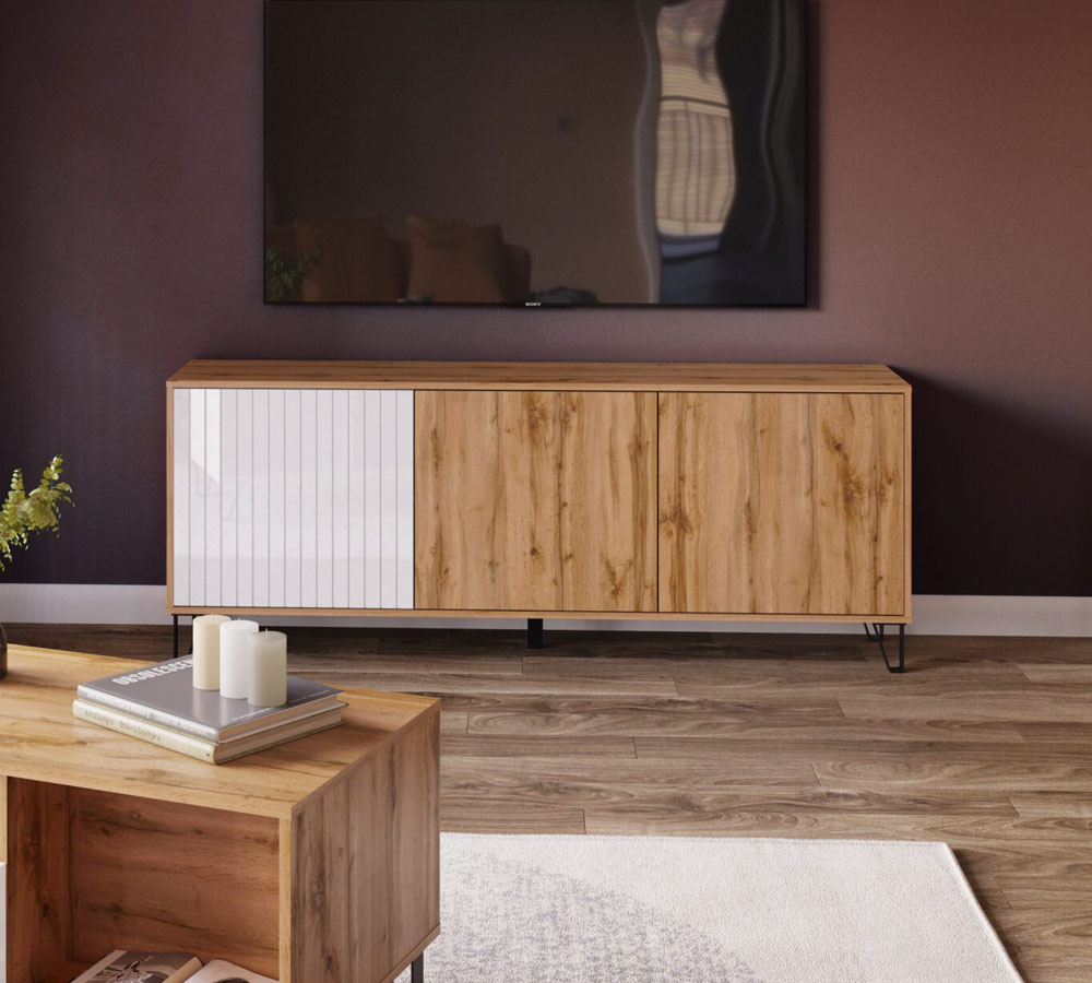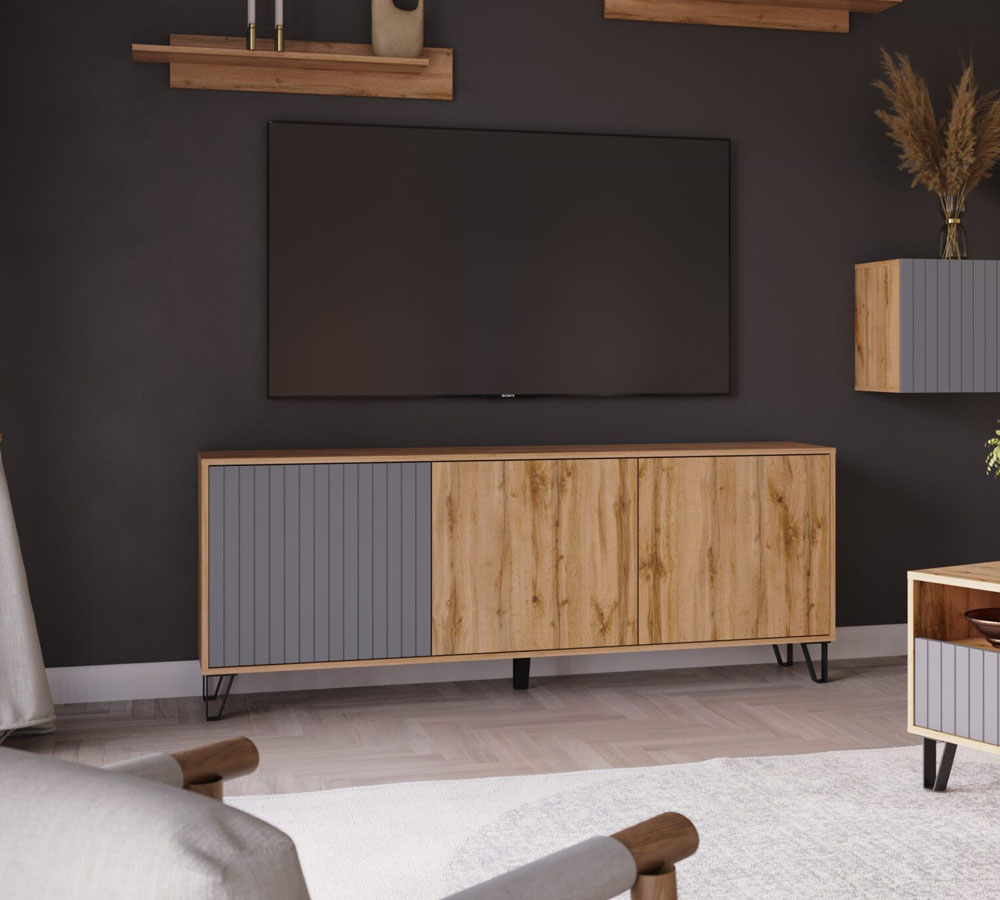 ТВ-тумба Ливерпуль — это сочетание спокойных цветов корпуса с ярким фасадом из МДФ. Опора в стиле «Лофт» притягивает взгляд. Стильная и вместительная ТВ-тумба Ливерпуль отлично подойдет под размер любого TV. Благодаря системе открывания «push to open» изделия выполнены без ручек.