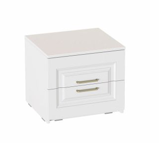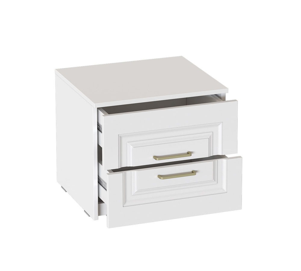 Тумба выполнена в цвете Айс 06 / Белый Аляска. Классическая фрезеровка фасадов и ручки-скобы из брашированного золота придают изделию особый шарм и элегантность. Тумба оснащена двумя ящиками полного выдвижения на шариковых направляющих, которые скользят бесшумно и плавно. Дно и задние стенки выполнены из ХДФ. На опорах размещены войлочные подпятники.