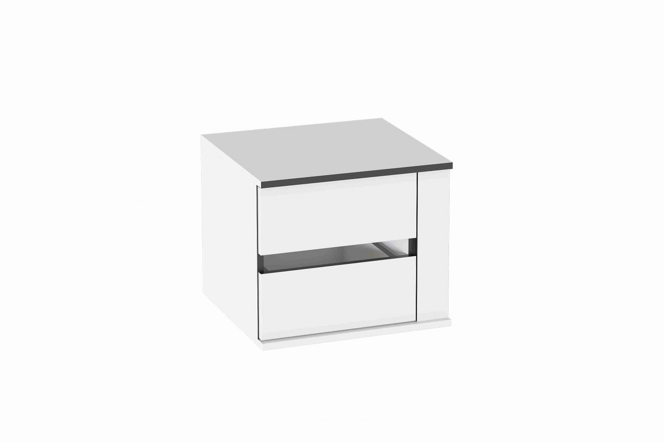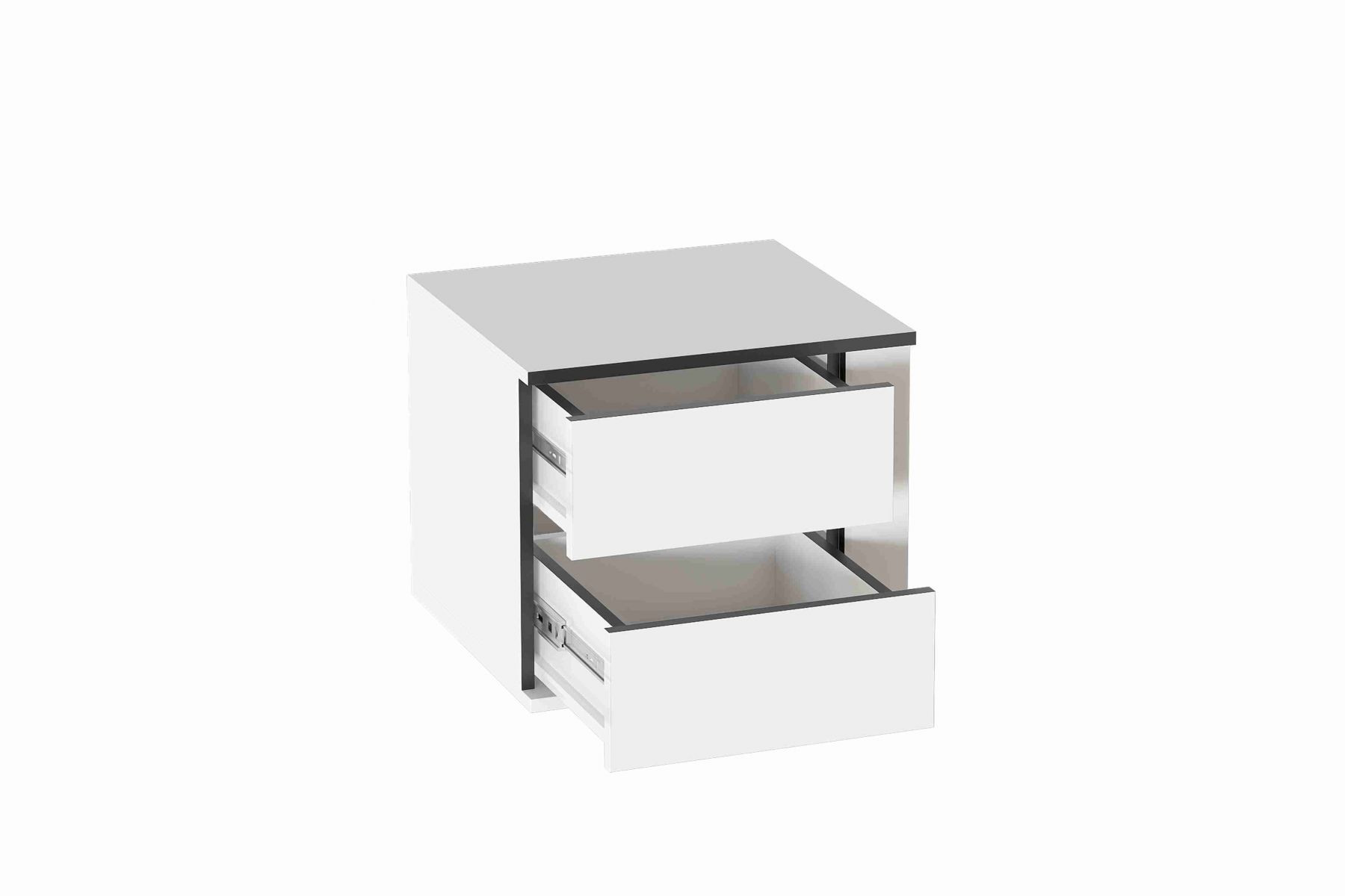 В комплект тумбы входит корпус с вкладными боками между которыми установлены два выдвижных ящика на шариковых направляющих.
