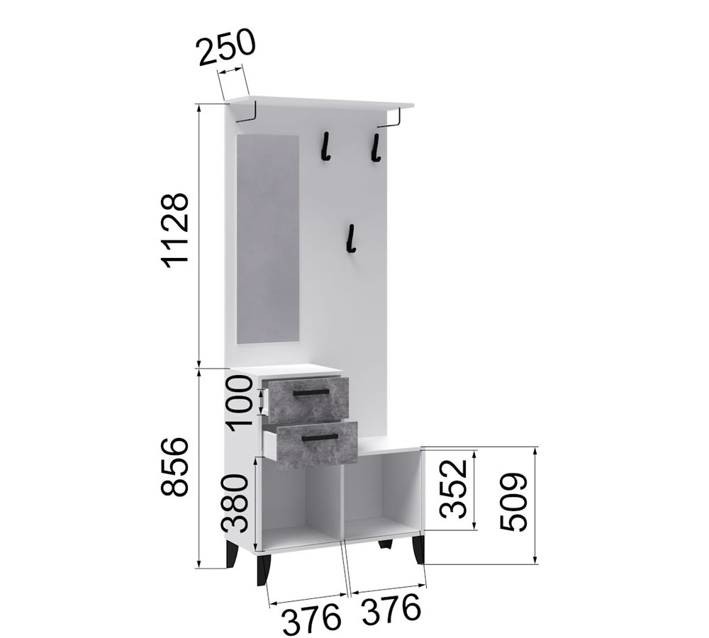 Вариант 1: Корпус ЛДСП Белый с тиснением «Древесные поры», Фасад ЛДСП Ателье Светлое