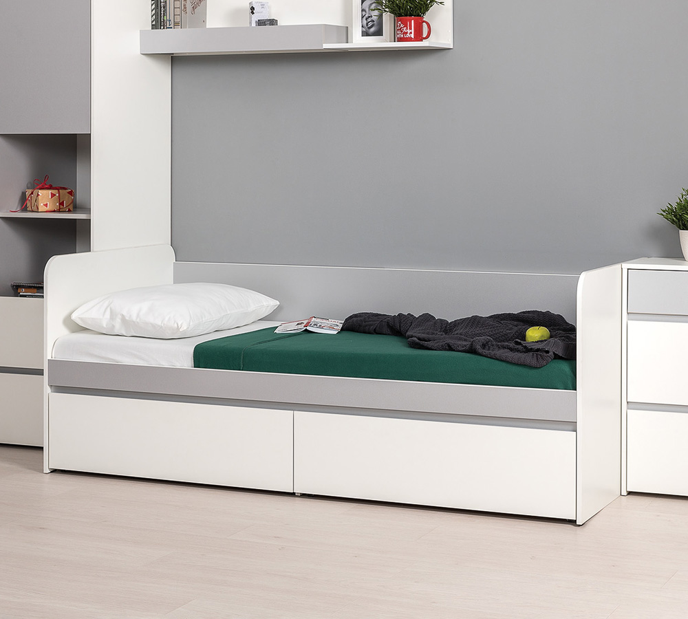 Кровать односпальная с ящиками, спальное место 800*1900мм матрас в комплект не входит. Коллекция мебели для детской комнаты Торонто от МФ Моби.