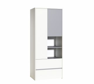 Шкаф 2х створчатый распашной белый. За распашными дверьми находится штанга. Полка и два выдвижных ящиков для аксессуаров и коробок с обувью.