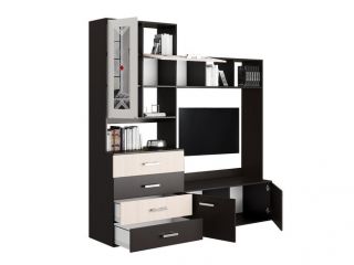 Гостиная Берта состоит из Тумба ТВ 2000мм: Ниша 1200мм и Шкаф двухстворчатый с ящиками 800мм. Цвет: Венге/ Дуб Белфорд, Ясень белый. Общий габари: Ширина 2800мм Высота 2120 Глубина 470мм.