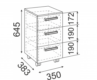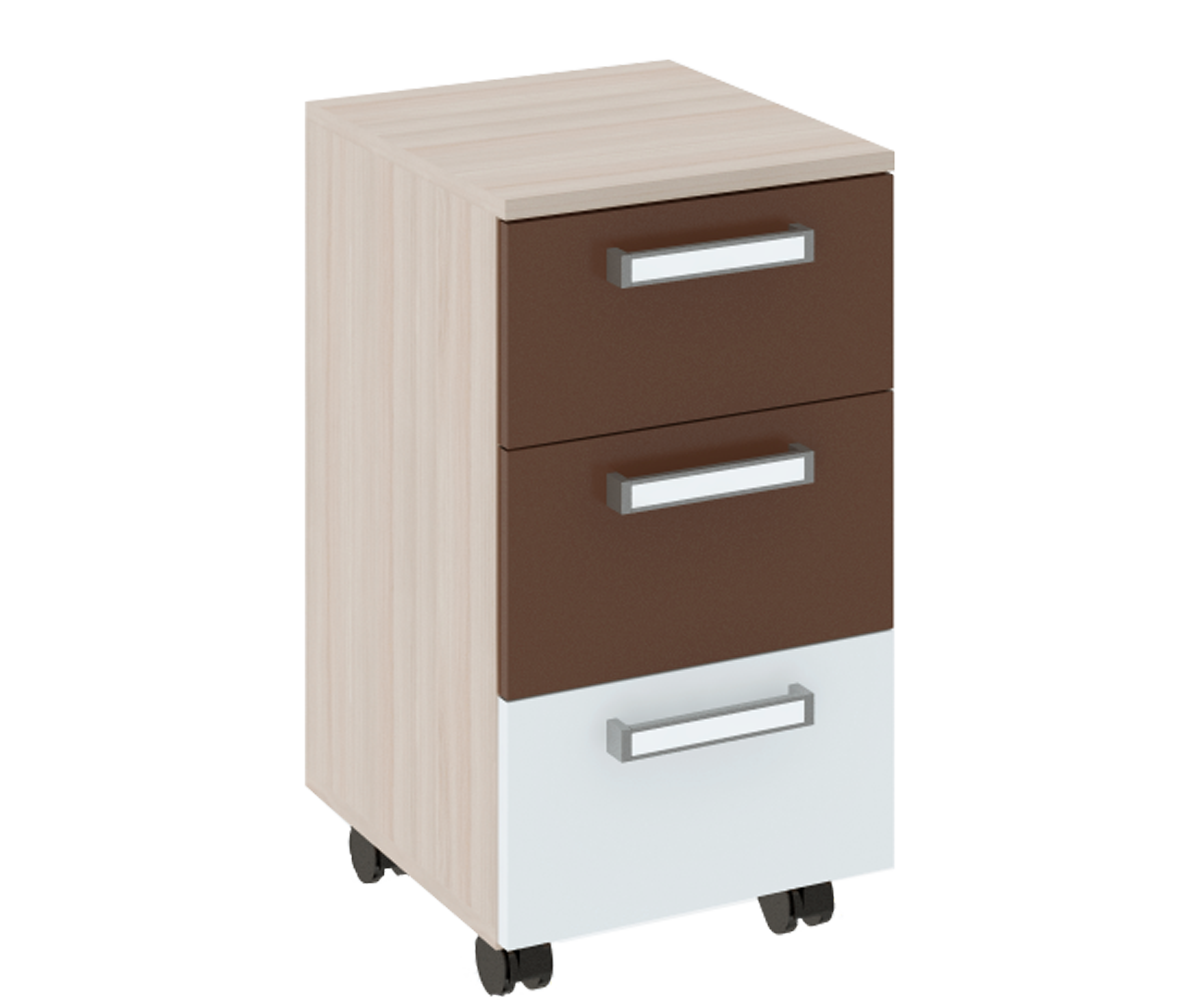 Особенности изделия: Тумба имеет 3 выдвижных ящика. Ящики на шариковых направляющих полного выдвижения. 4 колесные опоры позволяют использовать тумбу, как передвижной мини-стол. Тумба компонуется со Столом прямым М08 и позволяет освободить рабочее пространство на нем.